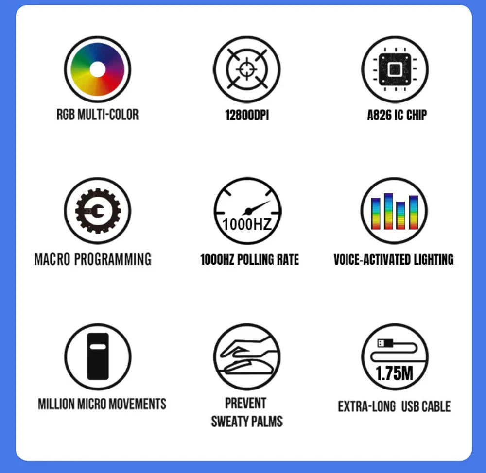 Unleash pinpoint accuracy and immersive RGB lighting with the FameDeals 12800 DPI Gaming Mouse. Your key to conquering virtual worlds.