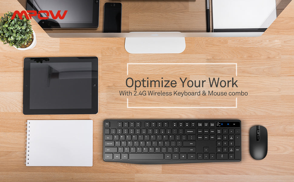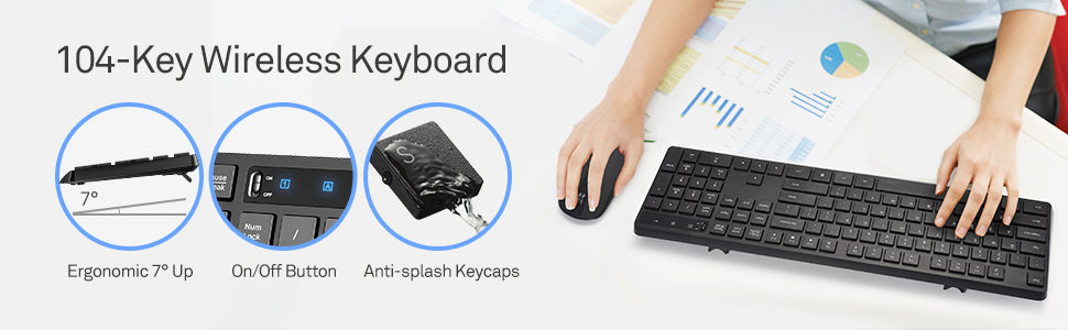 Wireless Keyboard and Mouse Combo, 2.4G Wireless Full-size and Spill-resistant Keyboard