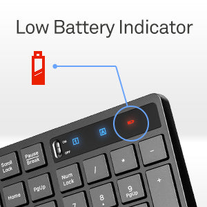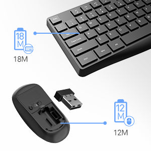 • MULTIFUCTIONAL. Boost your workflow with 12 multimedia keys & the 4-button mouse (800-1600 DPI). Slim portable design – easily tossed in your backpack. Convenient caps lock, num lock and battery power indicator lights are available for computing tasks.