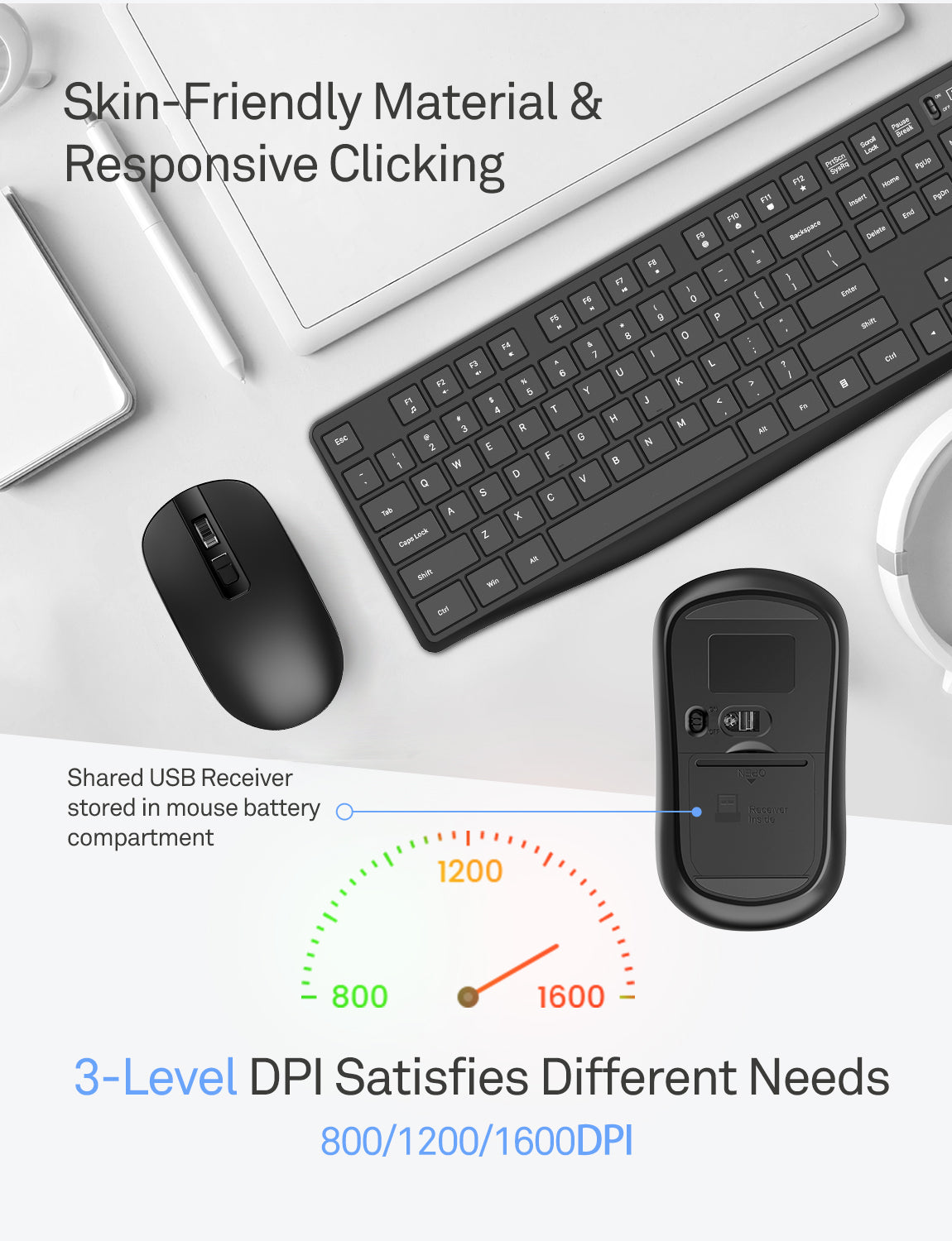 Wireless Keyboard and Mouse Combo, 2.4G Wireless Full-size and Spill-resistant Keyboard