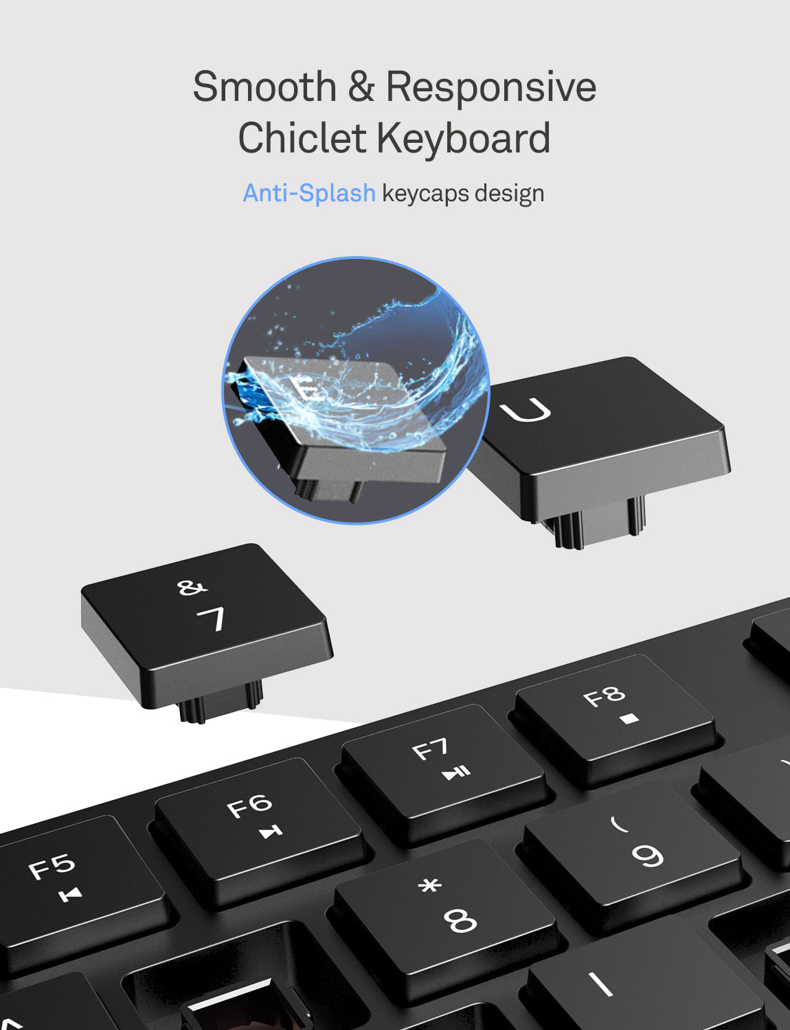 • SPILL-RESISTANT & ANTI-WEAR. Effectively protect your keyboard mouse set from accidental spills. Unique enhanced labeling technology help protect keycaps from fading or wearing.